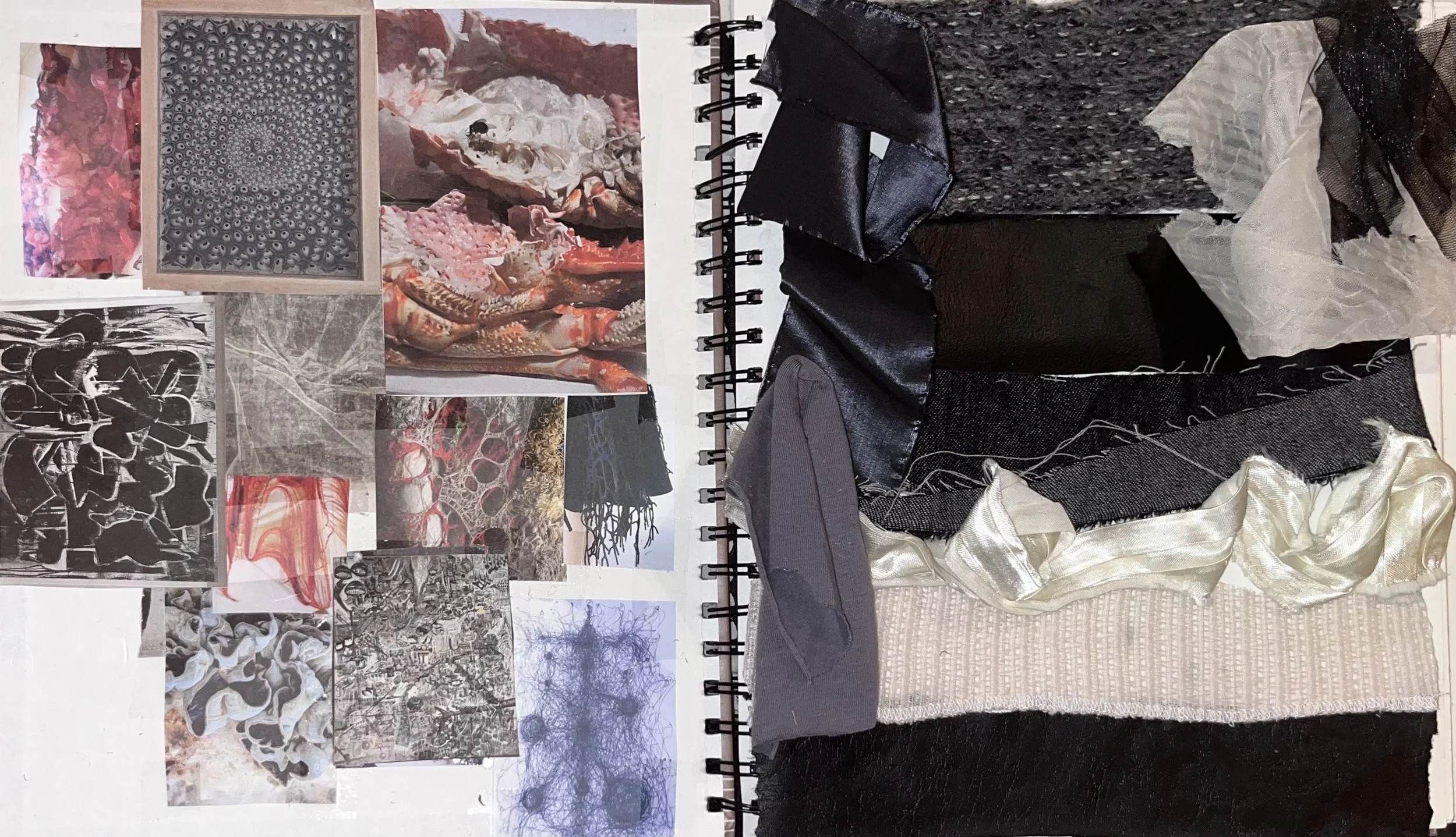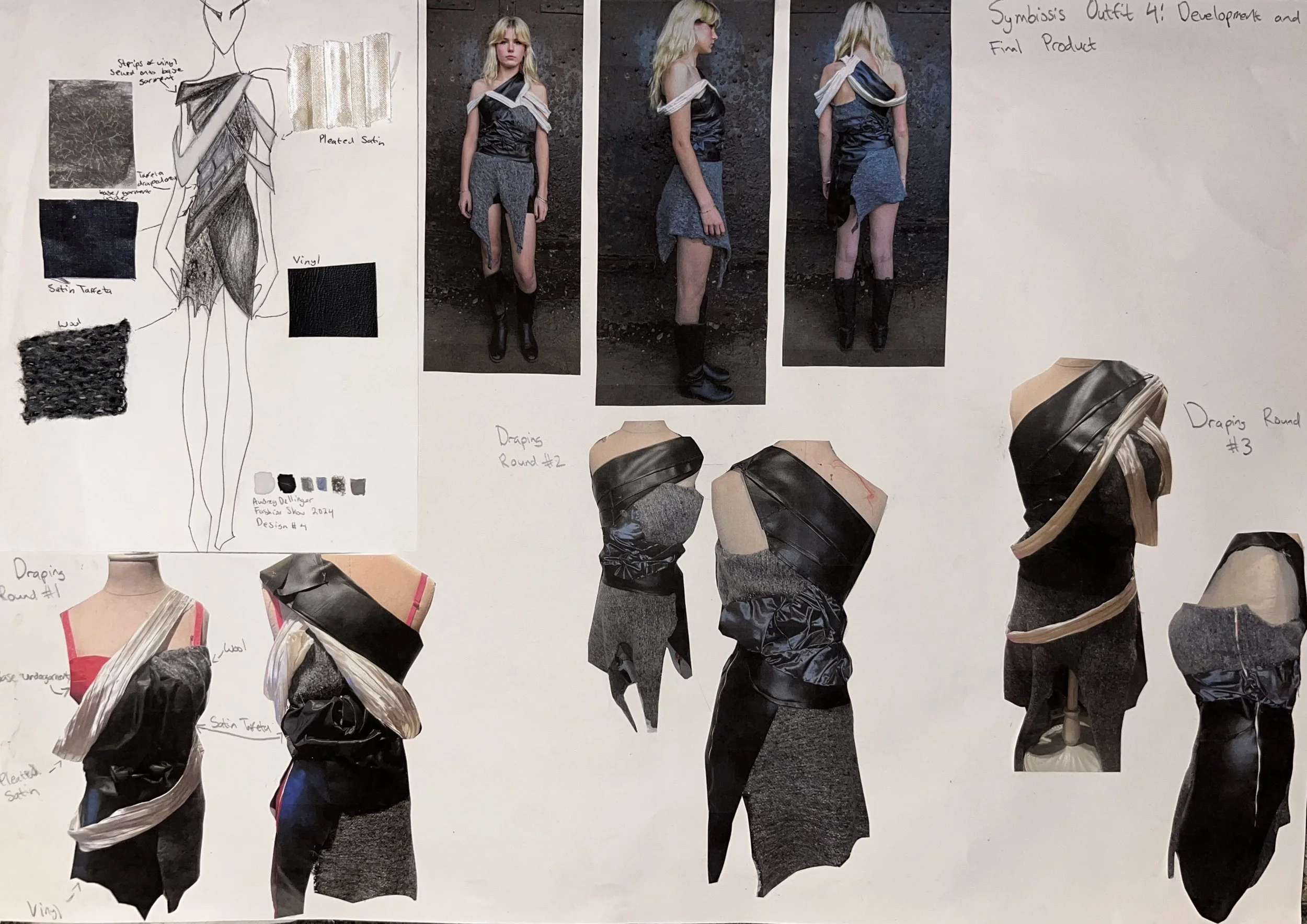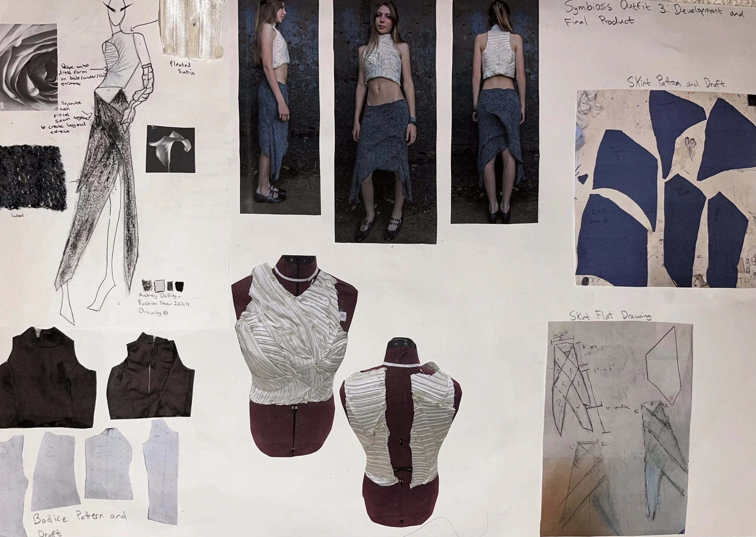 My 2024 fashion collection focused on symbiotic relationships between living organisms and their environments. This six-piece collection used unconventional textiles and neutral palettes to highlight textures and forms.